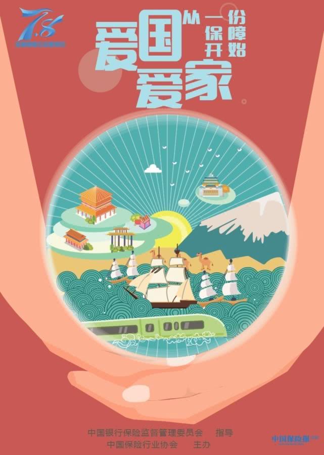 2019年,中國保險行業(yè)協(xié)會繼續(xù)主辦“7.8全國保險公眾宣傳日”活動,并于近日發(fā)布了2019年“7.8全國保險公眾宣傳日”海報。海報整體設計根據(jù)新中國成立70周年以來各行各業(yè)的快速發(fā)展,人民生活水平的不斷提高,以及國家“一帶一路”倡議為來源,用生動的藝術語言詮釋了保險行業(yè)與祖國共同成長,保障人民幸福生活,表達“愛國愛家,從一份保障開始”的年度主題。
