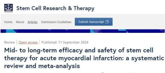 由韓國(guó)首爾國(guó)立大學(xué)醫(yī)院牽頭組建的科研團(tuán)隊(duì),在國(guó)際權(quán)威期刊《干細(xì)胞研究與治療》上發(fā)表了一篇題為《干細(xì)胞治療急性心肌梗死的中遠(yuǎn)期療效與安全性:系統(tǒng)性評(píng)價(jià)與薈萃分析》的文獻(xiàn)綜述。